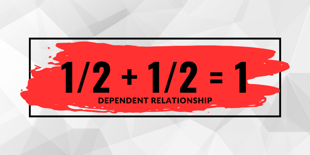 Recognizing Unhealthy Relationships: Unhealthy relationships are characterized by toxicity, imbalance, and dysfunction. Individuals involved in an unhealthy relationship tend to have unresolved experiences with previous relations or were not properly prepared to involve themselves with others in a way that supports a healthy or favorable experience. Nevertheless, individuals involving themselves in any kind of relations with another person should have a sound idea of oneself. The formula below in red illustrates when two individuals in an unhealthy relationship usually have one or more reasons for unhealthy dependencies. May that be with each other or other dependency issues like insecurities, or substance abuse. Nevertheless, their reliance upon each other is not healthy in some form. Their unhealthy reliance upon each other makes them whole. An unhealthy dependence. Here are some warning signs to watch out for: Lack of Communication